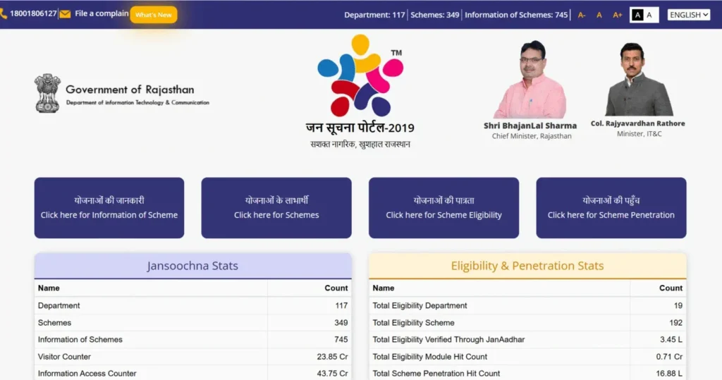 Jan Soochna Portal is an online transparence platform by the Government of Rajasthan that provide citizens access to informations about the government schemes, services, and beneficiaries.